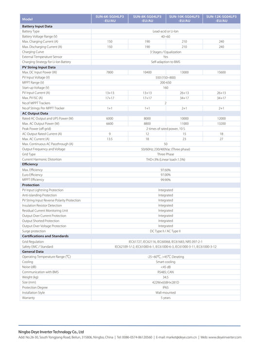 Deye Three Phase Hybrid Inverter SUN-12K-SG04LP3-EU