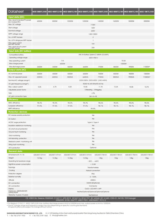 Growatt 10KW, Three Phase Storage Inverter MOD 10KTL3-XH
