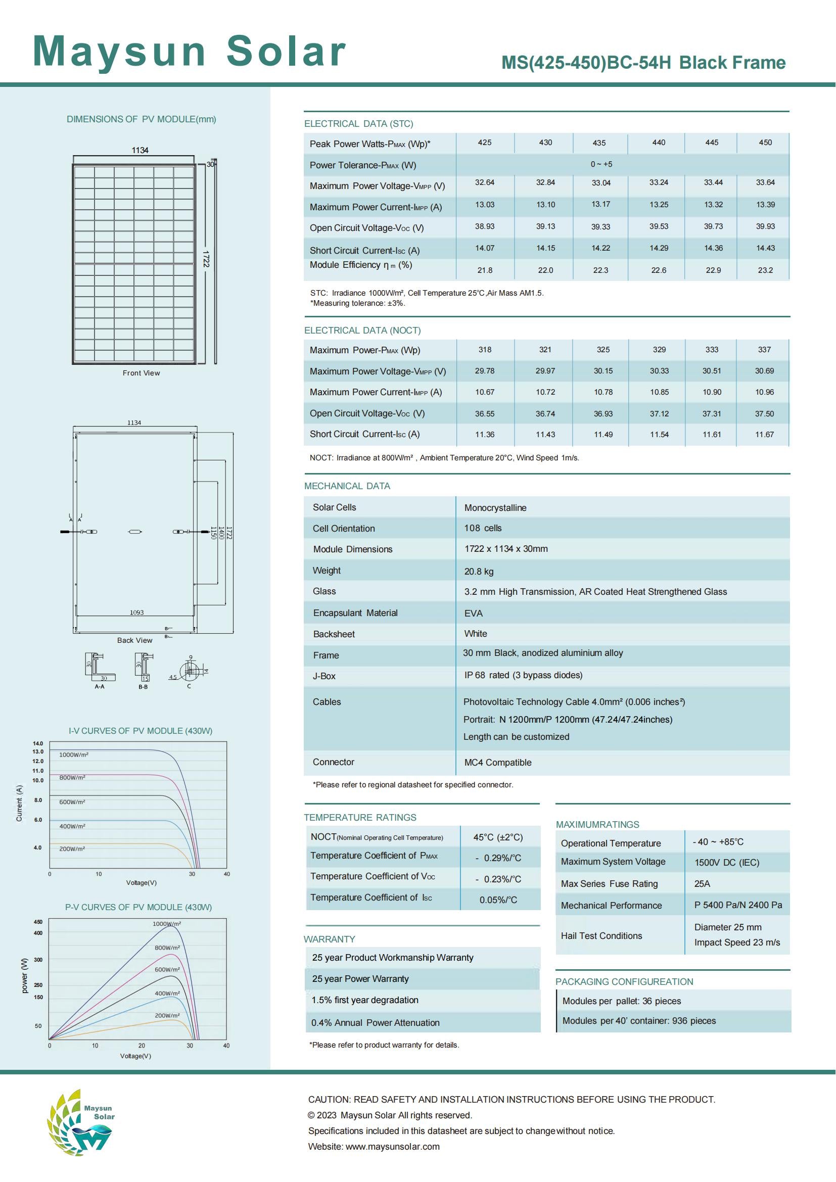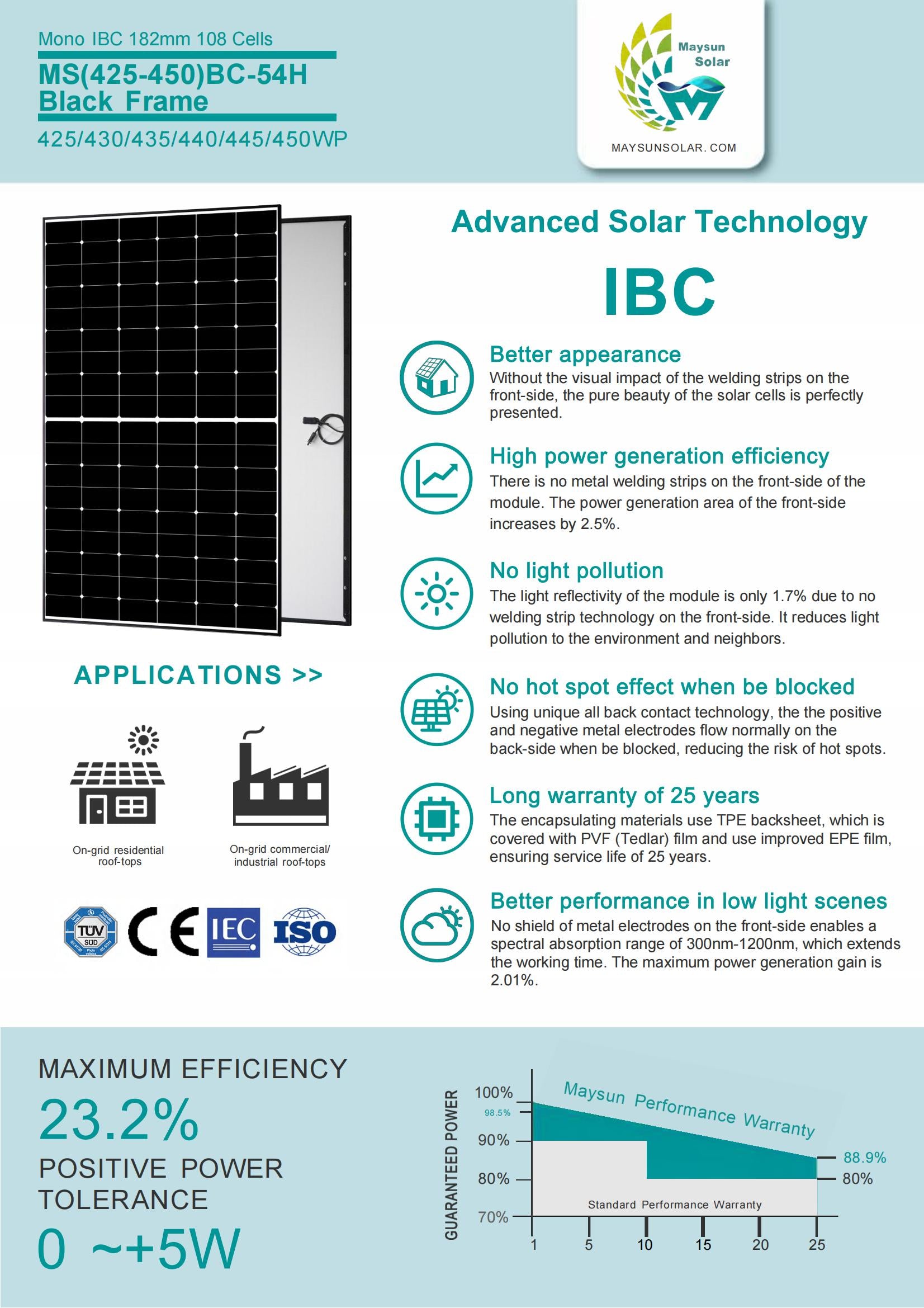 Article No:IBC Black Frame 425W 430W 435W 450W