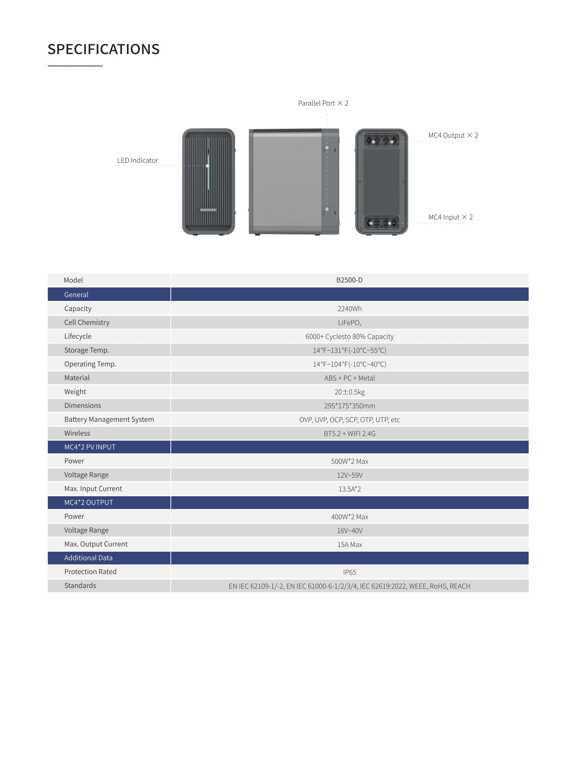Lithium storage for Balcony Solar Battery System MARSTEK 2.24KWH Battery with integrated WiFi